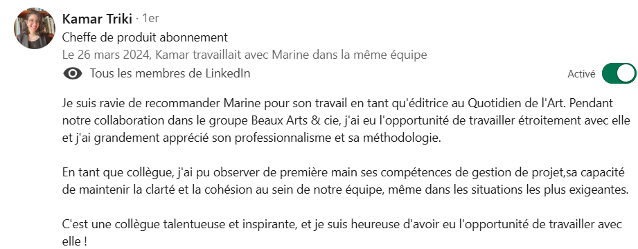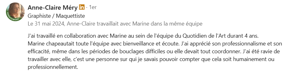 Pendant quatre ans, j’ai piloté le quotidien francophone de référence pour les professionnels de la culture, Le Quotidien de l’Art (groupe Beaux Arts & cie), assurant à la fois la gestion d’équipe et la production éditoriale.